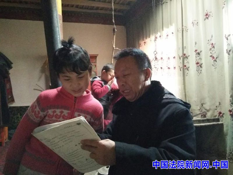 党组书记唐伟恒正在教亲戚家的女儿古丽妮尕尔汉语。