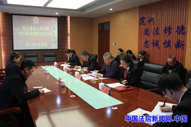 中国法院新闻讯(黄明超)1月20日,布尔津县人民法院党组召开2016年民主生活会。该院党组书记张孝杨主持会议,县纪检委、县委组织部督导组成员到会进行指导,院各庭室主要领导列席会议。