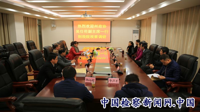 中国检察新闻讯(樊必斌)3月23日,黔东南州政协副主席吴仕伦率调研组一行到三穗县检察院调研公益诉讼试点工作,并与该院干警进行座谈。三穗县政协主席龙义立陪同调研。