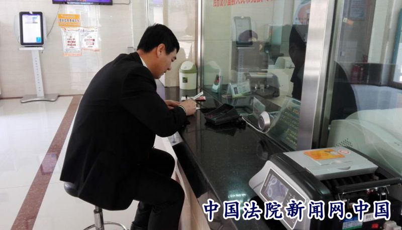 长白朝鲜族自治县人民法院干警将部分钱款存在金某住院账户上场景。