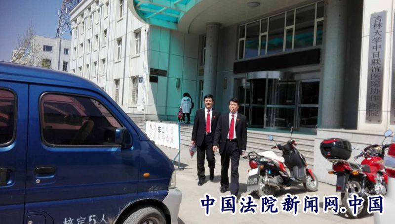 长白朝鲜族自治县人民法院干警走出医院大门继续下一个执行任务场景。