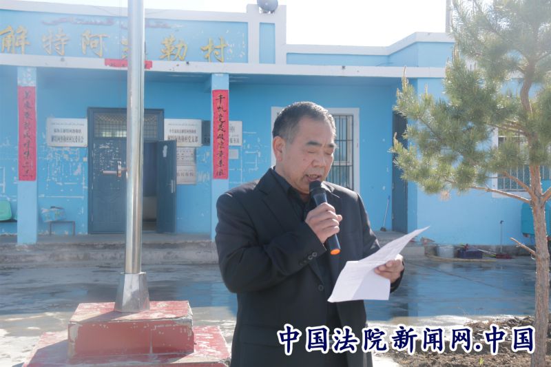 福海法院党组书记宋恒明同志在解特阿热勒村开展国旗下的宣讲。