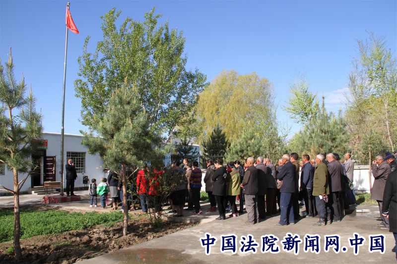 福海县人民法院院长达吾列·托列吾同志在喀拉毕村开展国旗下的宣讲。