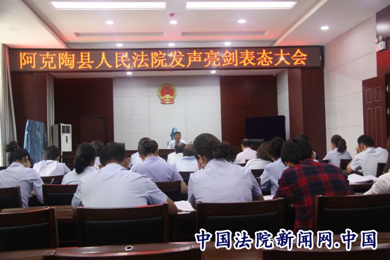 中国法院新闻讯(俞昊)按照阿克陶县党委要求,在多次全文学习相关文件和材料的基础上,5月17日,阿克陶县人民法院利用周三集中政治学习时间组织少数民族干部集中发声亮剑,深入揭批暴恐分子的反动本质和丑恶嘴脸,会议由该院党组书记、副院长丁子清主持,全院在职干警参加了会议。