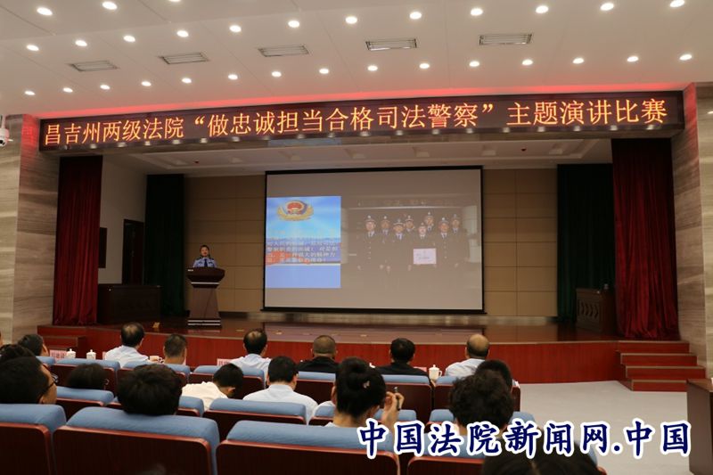中国法院新闻讯(魏先锋)5月19日下午,昌吉州中级人民法院举办全州法院系统“做忠诚担当合格司法警察”主题演讲比赛,来自全州两级人民法院共8位选手结合工作实际,谈人生、讲感悟,说理想,比奉献,用自己的亲身经历讲述司法警察的情怀,用自己的真情实感来抒发对维护公平正义的价值追求,精彩的演讲赢得现场观众热烈的掌声。
