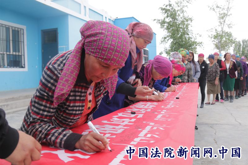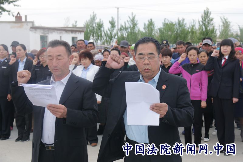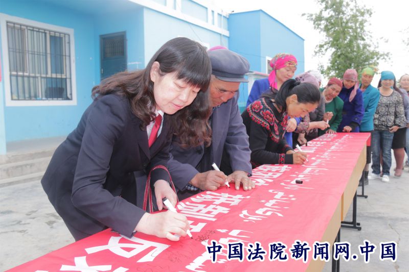 法院干警与农牧民一同签名发声亮剑