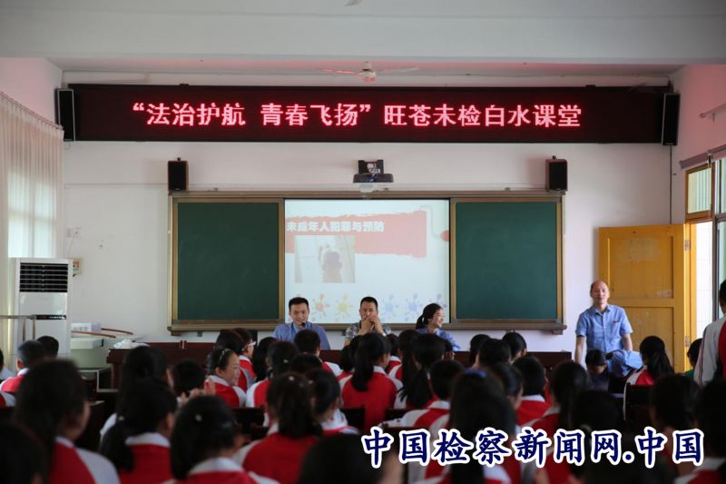 中国检察新闻讯(唐小川 郭宴萍)5月26日早晨,阳光灿烂,比阳光更灿烂的孩子们的笑脸。四川省旺苍县人民检察院开展主题为“法治护航、青春飞扬”的送法进校园活动。检察官们一早来到了白水中学,这所省级法治示范校就是检察官们今天的法治宣传阵地。