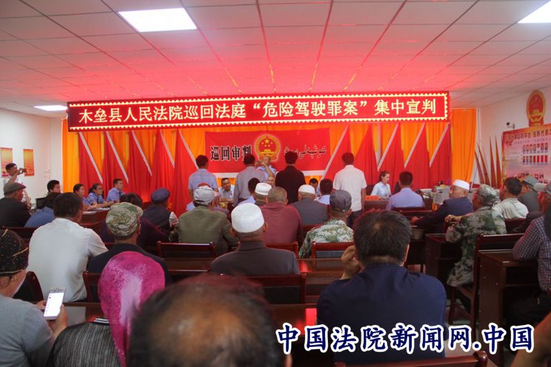 中国法院新闻讯(李金汝)为打击醉酒驾驶,进一步彰显醉驾入刑威慑力,减少醉驾以及因此引发的交通事故,6月19日、6月23日,新疆木垒县法院交通巡回法庭分别在木垒县交警大队、大石头乡朱散得村村委会集中审理8起危险驾驶罪案并当庭宣判,木垒县运输公司负责人、社会各界驾驶员代表、交警大队民警及大石头乡朱散得村村民共计90余人分别旁听了庭审。