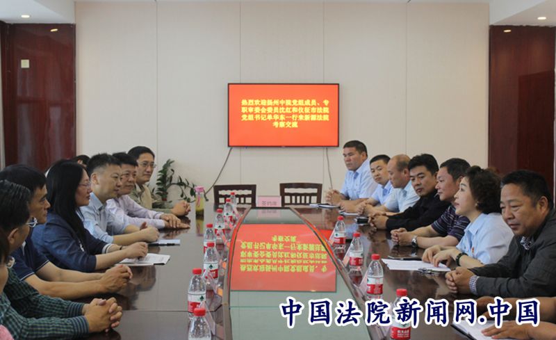中国法院新闻讯(何纪明)6月29日,江苏省扬州市中级人民法院党组成员、专职审委会委员沈红、仪征市人民法院党组书记、院长单华东等一行7人到新源县人民法院开展调研指导工作,并举行了新源县法院与仪征市法院结成友好法院的签约仪式,新源县人民法院全体党组成员、各庭室负责人参加了会议。