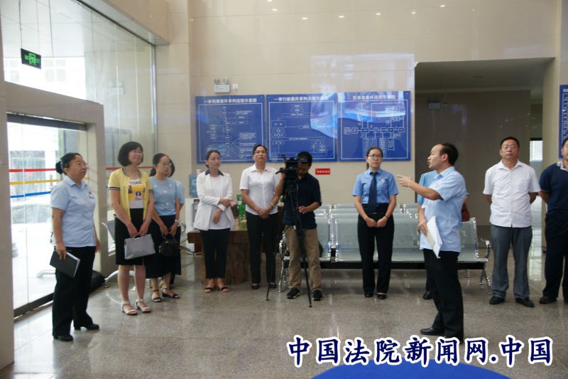 代表们一行依次参观了镇康县法院法律援助工作站、法院立案窗口、远程信访接待室、数字法庭,体验自助查询服务,代表们边看边听诉讼服务中心负责人介绍和讲解,随后又召开了座谈会。