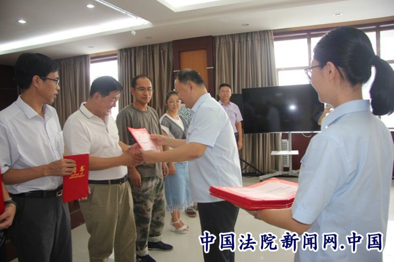副院长范志伟宣读了昌吉市法院《关于聘请朱平等十一人为特邀调解员的决定》,并由院长王春雷向十一名特邀调解员颁发了聘书。