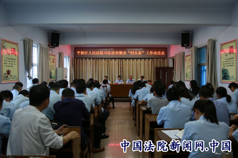 中国法院新闻讯(王雪阳 张珊珊)为确保省法院司法巡查整改“回头看”工作顺利进行,9月25日下午,信阳市平桥区人民法院组织召开全院干警动员大会,全面推进平桥法院党风廉政建设和反腐败工作。会议由院党组成员、副院长张华泽主持,院党组书记、院长马萍作动员讲话,全院干警参加会议。