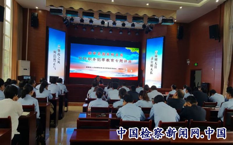 中国检察新闻讯(饶以态)为有力提升广大国税干部廉洁自律意识和依法依规办事观念,近日,贵州省毕节市赫章县检察院应邀为县国税局干部职工开展预防职务犯罪警示教育专题讲座,筑牢了该局干部职工拒腐防变思想防线。