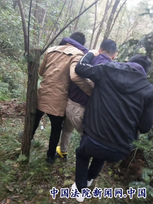 平桥法院执行干警朱雪杰、张瑞搀扶男子下山