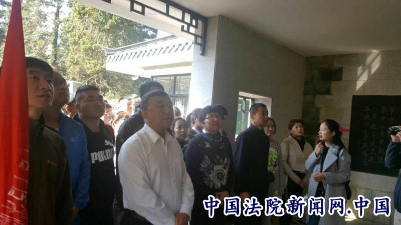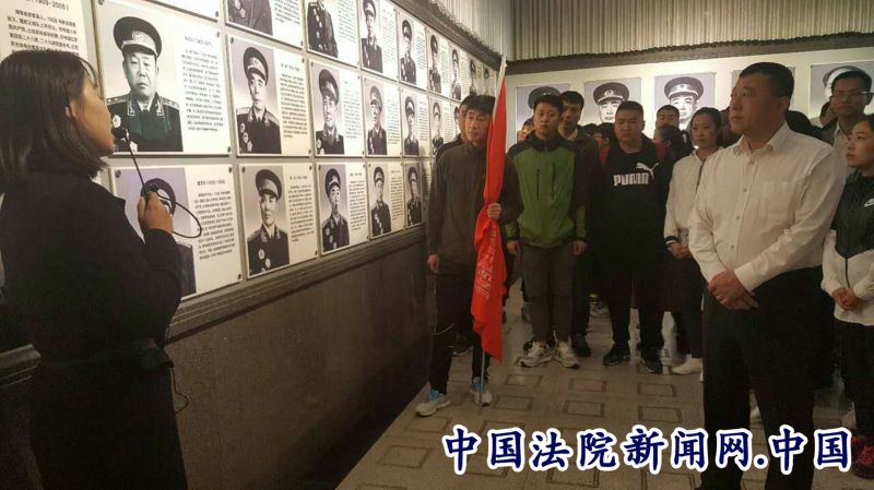 长白县人民法院干警听取井冈山展览馆讲解员介绍井冈山斗争史场景
