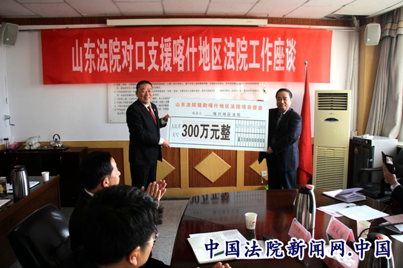 中国法院新闻讯(冯静慧)2017年11月3日,喀什地区中级人民法院隆重举行山东法院援助喀什地区法院工作座谈会暨援助仪式。山东省高级人民法院正厅级审判员宋文明同志受山东省高院党组委托,向喀什法院赠送援助资金300万元。
