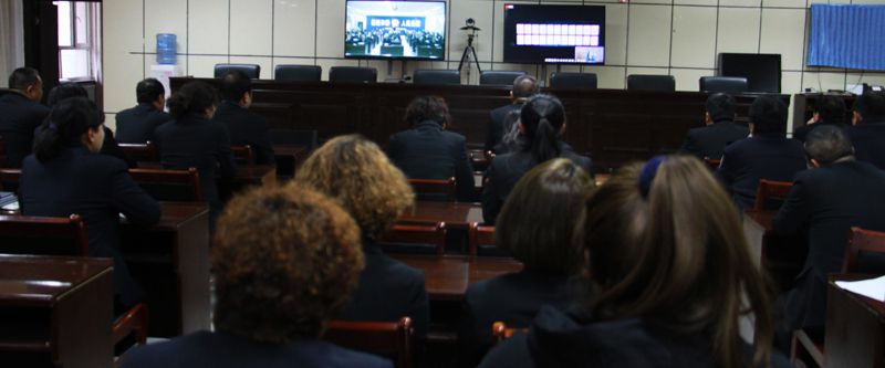 中国法院新闻讯(任万民)2017年12月4日,在第四个国家宪法日,最高人民法院举办以“弘扬宪法精神感受公平正义”为主题的“12•4”公众开放日活动视频会。和静县人民法院全院干警及工作人员在该院五楼视频会议室参加了视频会。
