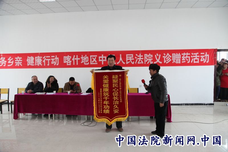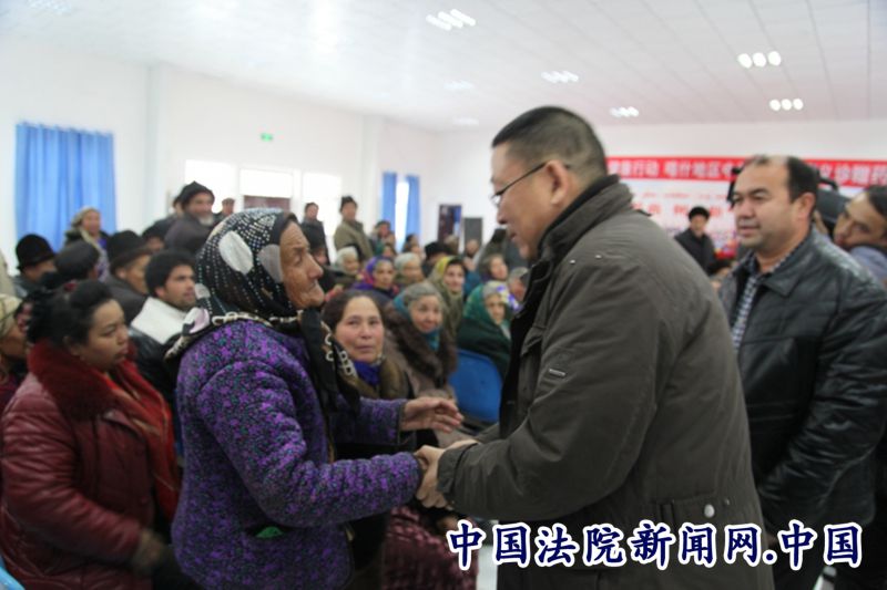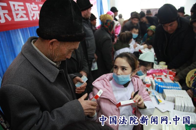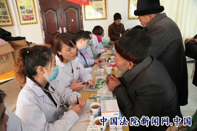 中国法院新闻讯 喀什地区疏勒县英尔力克乡3村的老人69岁的依不拉音木•托合提听说有义诊活动早早就来到了村委会,量完血压,护士告诉他血压有点高,经过医生进一步诊断后,告诉他要注意饮食,并开了降血压的药,依不拉音木•托合提:“感谢地区中级法院驻村工作队,以前有法律上的问题找工作队员咨询,这次工作队又请来医院的医生给我们看病,心里的疙瘩和身体上的疾病都在家门口解决了。”