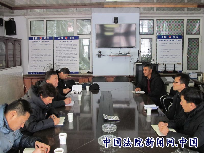 长白朝鲜族自治县人民法院翁建军代理院长在该县新房子镇与乡领导座谈行政执法。