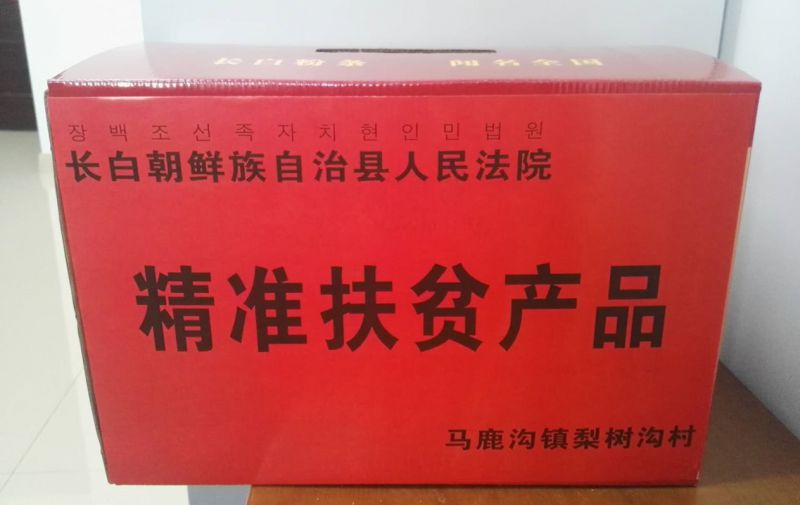图为长白朝鲜族自治县人民法院精准扶贫产品样品。
