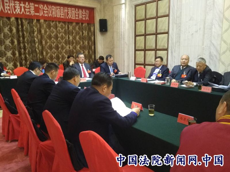 在和硕代表团,和硕县县长哈热首先发言,对法院工作报告表示赞同,并总结出法院工作的两大亮点:一是巴州两级法院加大了宣传力度,通过媒体,面向基层、面向百姓进行了宣传,使普通百姓对法律有所了解,逐渐知道要懂法守法。同时通过严打,惩处了犯罪分子,惩罚与宣传教育相结合,起到了很好的作用。二是人民法院在偏远的地区设立巡回法庭,法官们不怕辛苦,背着国徽去开庭,解决民间争端,效果显著。