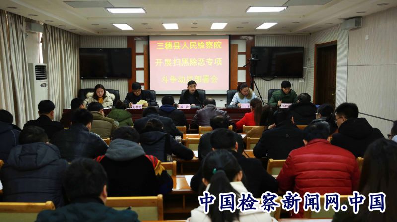 中国检察新闻讯(吴芝玉 杨政富)近日,三穗县人民检察院召开扫黑除恶专项斗争工作动员部署会议,该院全体干警参加会议,会议由该院党组书记、检察长潘涛同志主持并作动员讲话。