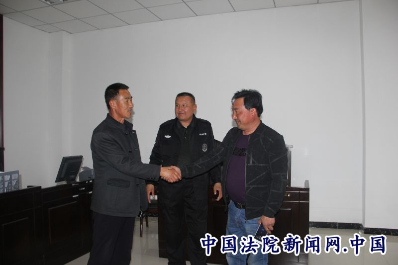 原被告双方握手言言。