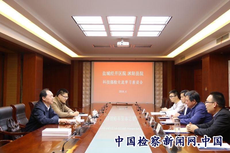 中国检察新闻讯(傅学斌)近日,盐城市经济技术开发区检察院党组成员陆建锋、技术科辅知平一行2人至沭阳县院交流科技强检工作,沭阳县院党组成员、财装兼技术科科长周志刚等人陪同座谈交流。