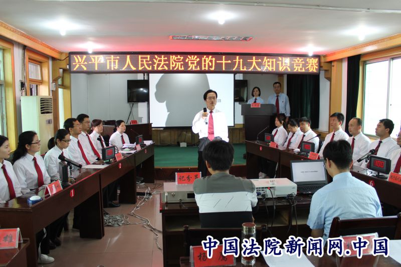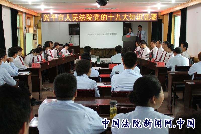 中国法院新闻讯(李军委)为创新党的十九大学习方式,努力将干警认识和行动统一到党的十九大精神上。4月28日上午,兴平法院举行党的十九党精神知识竞赛,各庭室各部门六支代表队一决雌雄,全体干警观看了竞赛。