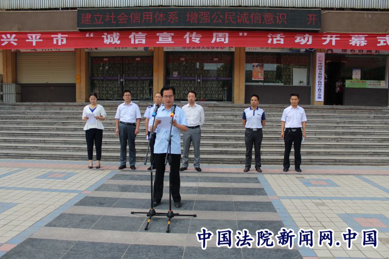 中国法院新闻讯(李军委)6月14日上午,在市信息办的牵头下,兴平法院联合综合行政执法局、交通局等单位,在兴包广场开展“诚信宣传周”活动,促进诚信体系建设,营造诚实守信社会氛围。