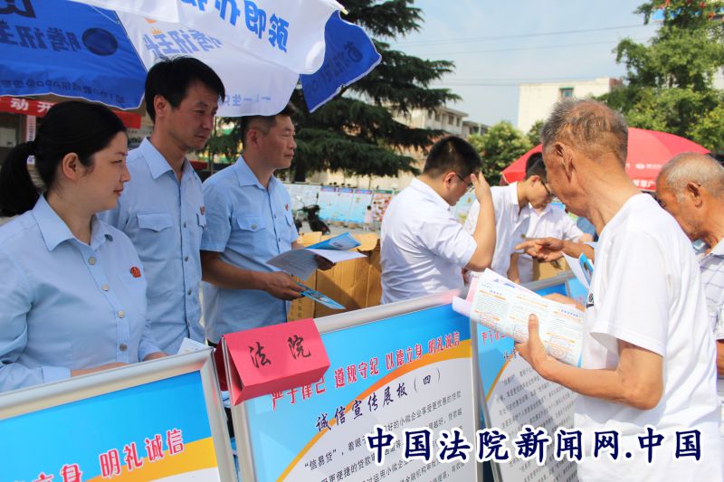干警们还向群众赠送了诉讼指南、诉讼风险提示、司法救助指南、信用记录相关问题解答等普法及诚信宣传材料,接受了七十余名群众法律咨询,教导群众树立“诚信为本、操守为重”的观念,弘扬“讲诚信话、办诚信事、做诚信人”的传统美德,受到了广大群众的一致好评。