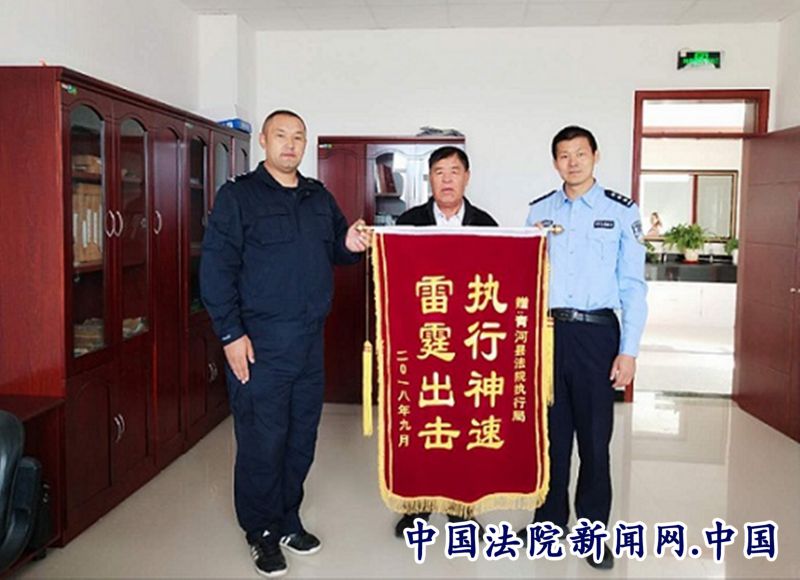 中国法院新闻讯(拉扎提)“雷霆出击、执行神速”,近日,张某某将这样一面印有八个大字的锦旗送到了青河县人民法院执行庭法官手中,向执行法官表达了诚挚的感谢。