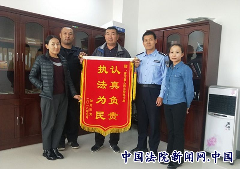 中国法院新闻讯(拉扎提)近日,一执行案件当事人将一面写有“执法为民 认真负责”的锦旗送到青河县人民法院,表达对执行法官们的感激之情。