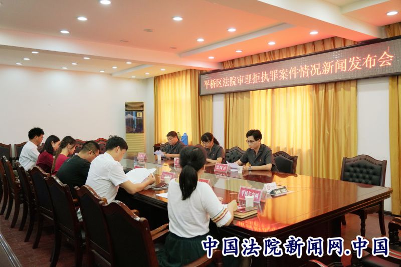 中国法院新闻讯(王雪阳)9月13日下午,信阳市平桥区人民法院召开审理拒执罪案件情况新闻发布会,向媒体记者通报了2018年以来平桥区法院打击拒不执行法院判决、裁定罪的基本情况,并发布了打击拒不执行法院判决、裁定罪四个典型案例。省市多家媒体应邀参加新闻发布会。