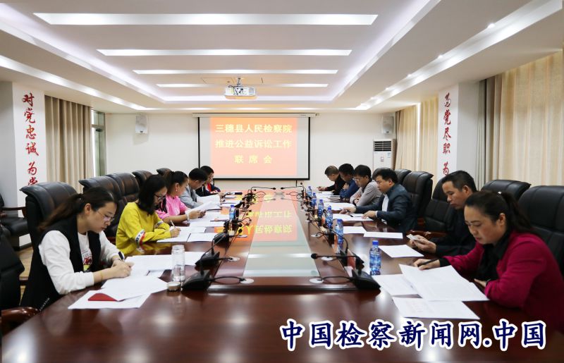 中国检察新闻讯(刘慧)9月13日下午,三穗县人民检察院组织召开协同推进公益诉讼工作联席会议。三穗县纪委(监察委)、法院、公安等6家单位相关负责人,县检察院各部门负责同志共计13人参加会议,会议由该院副检察长田娟同志主持。