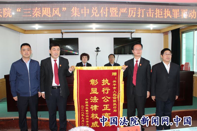 当事人代表还向执行干警赠送了“利剑出鞘 打造诚信环境 法银合作 共筑金融安全”、“执行公正高效 彰显法律权威”两面锦旗,并作了简短发言,对兴平法院敢于动真碰硬,剑指失信“老赖”,维护社会公平正义最后一道防线的勇气点赞,对执行干警不辞辛劳,为民司法表示衷心感谢。