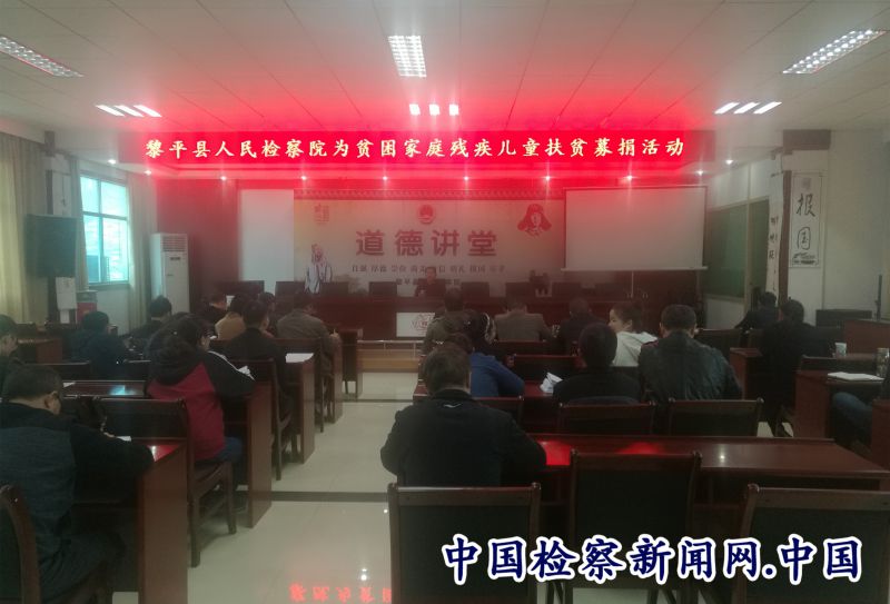 中国检察新闻讯(申志勇)2018年10月17日是我国第5个扶贫日,为营造人人关心扶贫、人人支持扶贫、人人参与扶贫的良好氛围,助力全县脱贫攻坚,黎平县人民检察院在全院干警大会上发出《倡议书》,倡议干警们积极向贫困家庭残疾儿童捐款献爱心,大家积极响应、踊跃参与,都希望能为贫困家庭残疾儿童尽一点自己绵薄的力量。此次共计募捐到5000元善款,全部善款均汇到县扶贫开发办公室账号。
