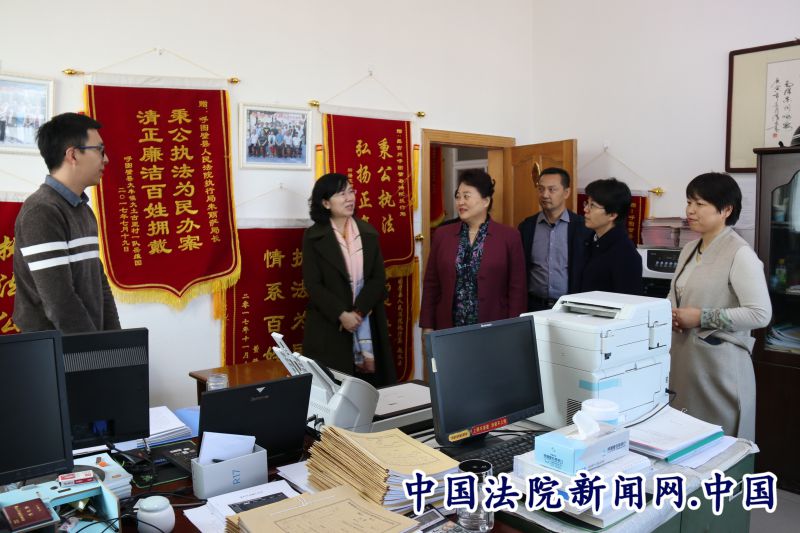 昌吉州中院党组书记王彩霞到执行局各办公室现场看望了正在紧张工作的干警,每到一处,王彩霞都与干警一一握手问候,亲切交谈,详细询问工作进展、遇到的困难和要求,体会到执行干警们的辛苦忙碌。