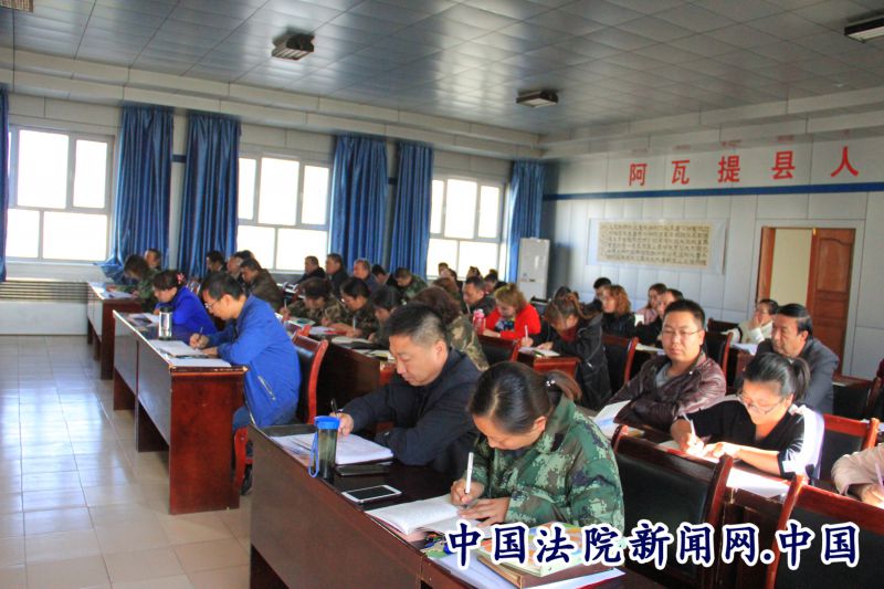 中国法院新闻讯(迪力胡马尔)近日,阿瓦提县人民法院召开全院大会,专题学习“聚焦总目标、作风再整顿”专项活动学习教育阶段必学篇目。专题会议由党组书记石岚同志主持,院领导班子成员、单位在职全体干警及退休老党员共80余人参会。