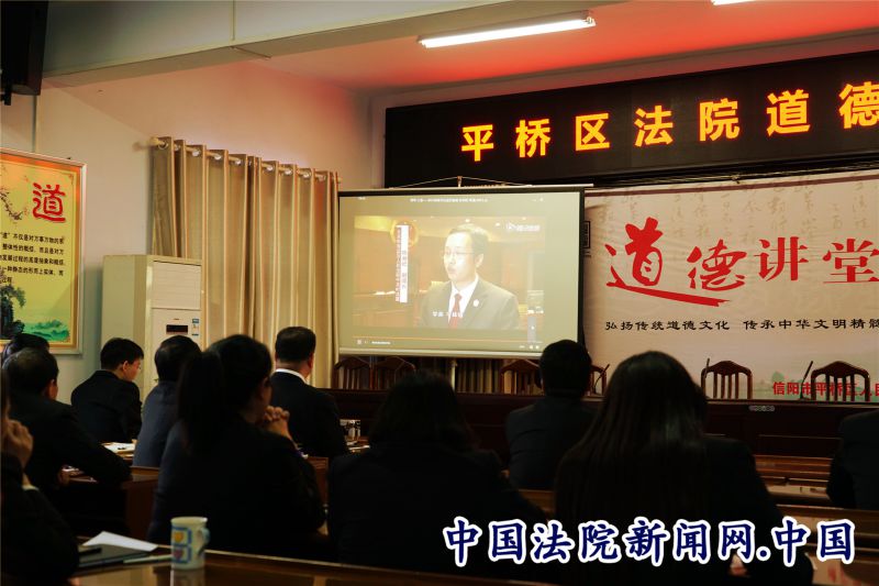 中国法院新闻讯(叶合青)2018年10月19日下午,信阳市平桥区法院开展了以“无悔的奉献”为主题的道德讲堂活动。全院干警济济一堂,又一次经受了道德的洗礼。活动开展得有声有色,取得了良好的效果。