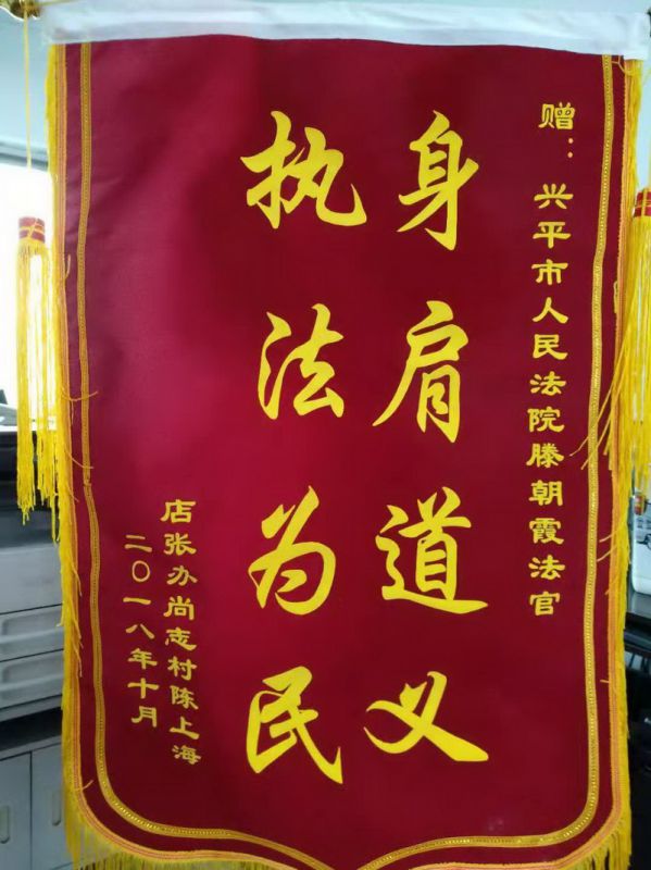 中国法院新闻讯(李军委)近日,陈某某专程前往兴平法院,向审监庭法官滕朝侠送来“身肩道义 执法为民”的锦旗,褒扬她心系百姓、秉公执法,化解困扰自己多年的难题。
