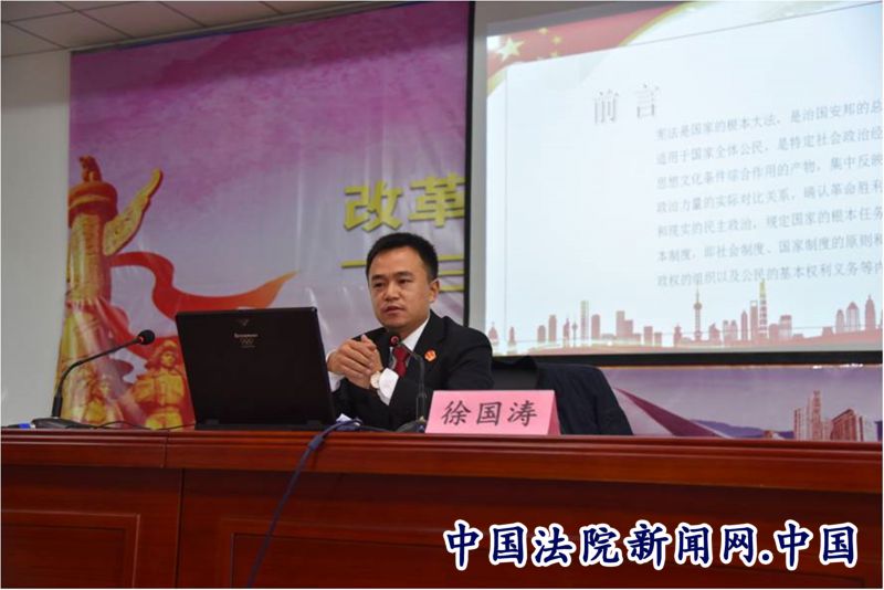该院宣讲员以“弘扬宪法精神 建设法治中国”为题,进行宪法宣讲,就正确认识宪法第五次修正案的深远意义、深入领会宪法第五次修定指示精神、宪法中关于爱国主义、铸牢中华民族共同体意识、切实发挥宪法在新时代治国理政实践中的重要作用等几个方面做了深刻阐述。