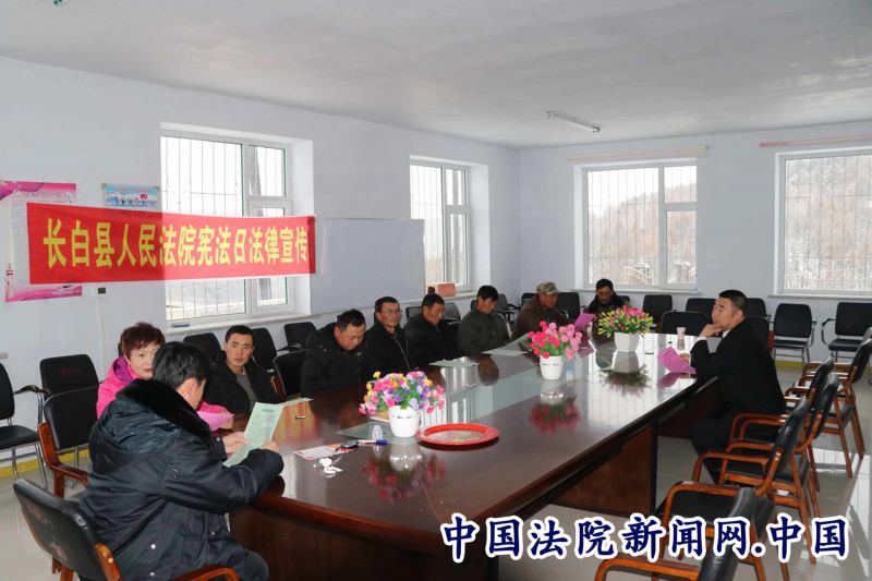 中国法院新闻讯(宫兆洲 李成贵)12月4日上午,吉林省长白朝鲜族自治县人民法院驻村工作队在马鹿沟镇梨树沟村开展 “国家宪法日”宣传,向“两委”及村民代表宣讲宪法,一起升国旗,让宪法精神不断得到弘扬。