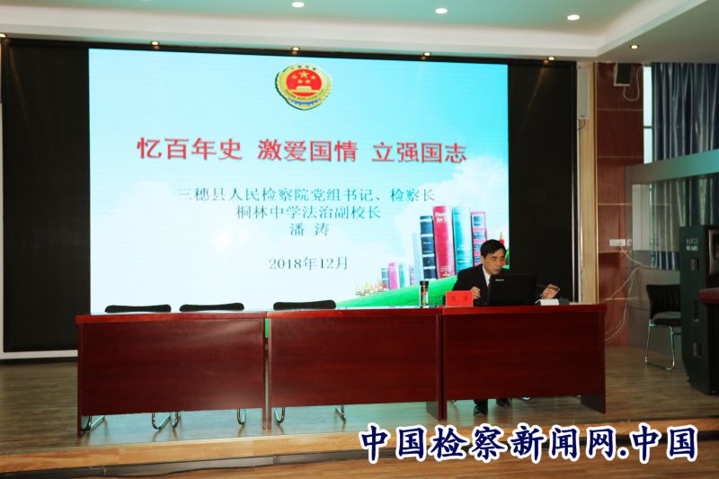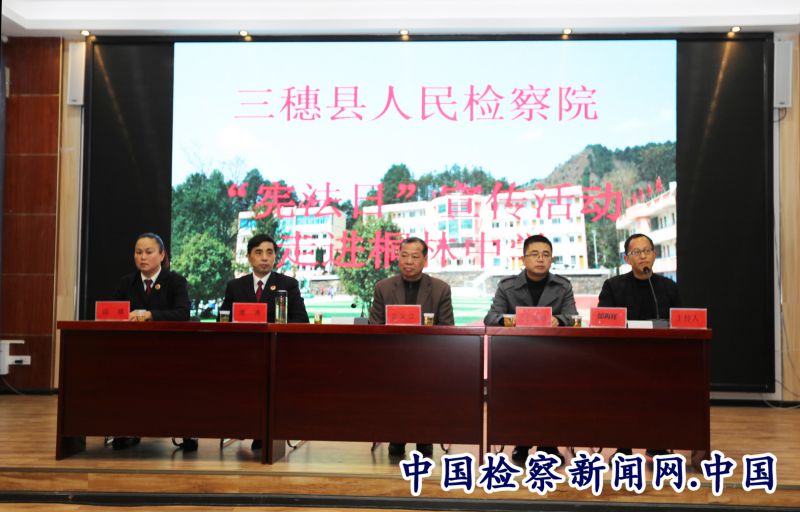 中国检察新闻讯(杨政富)为了贯彻落实好县委县政府关于法治扶贫的决策部署,进一步强化扶志扶智激发内生动力,助力打赢脱贫攻坚战。11月24日,该院党组召开专题会议研究部署法治扶贫工作,出台了《三穗县人民检察院脱贫攻坚暨法治扶贫宣传工作方案》。2018年12月4日,三穗县人民检察院到桐林中学举行“法治扶贫进校园”活动启动仪式,三穗县政协主席、桐林镇脱贫攻坚指挥部指挥长龙义立,该院党组书记、检察长、桐林镇脱贫攻坚指挥部副指挥长潘涛应邀出席会议,桐林镇党委有关负责同志、该院部分检察干警,桐林中学师生共计200余人参加活动,此次活动启动仪式由桐林中学有关负责同志主持。