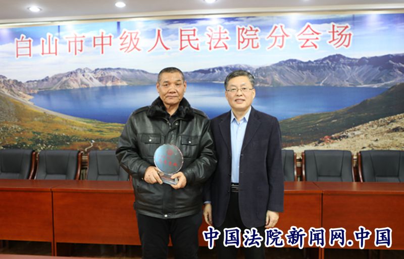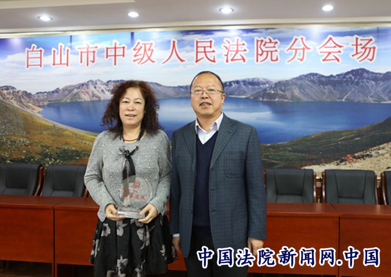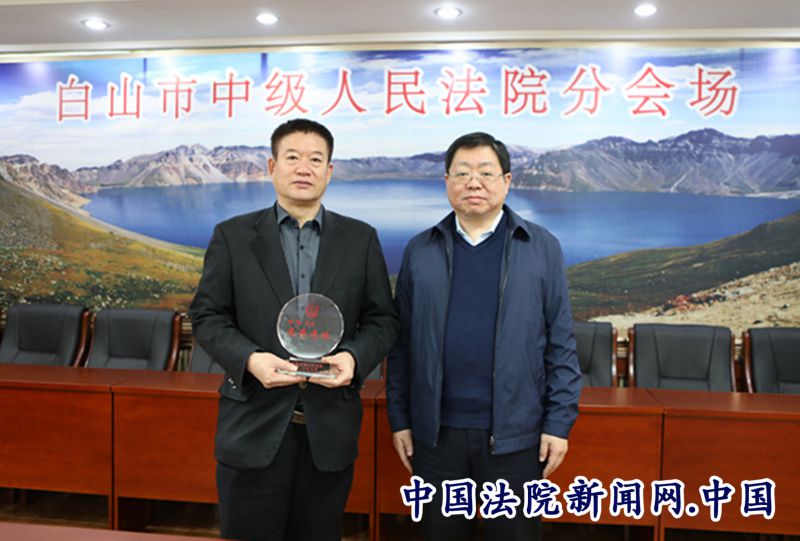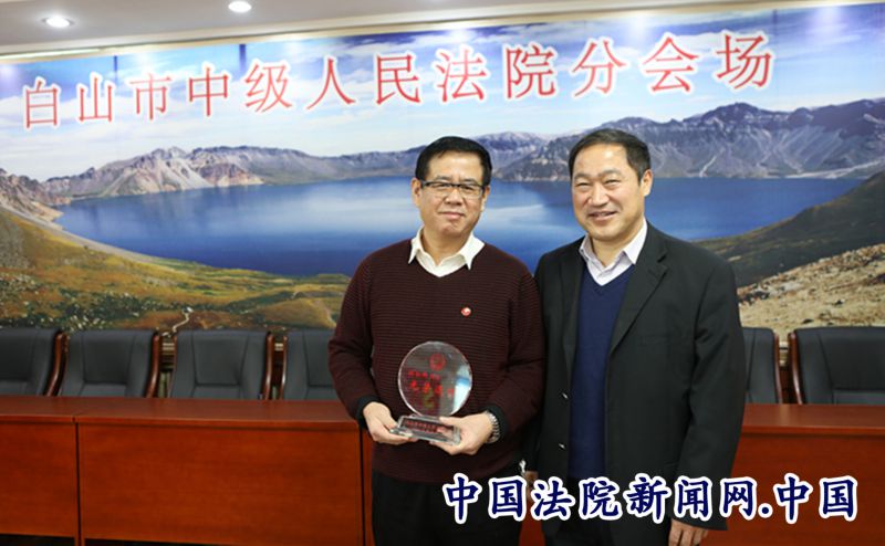 座谈前,院级领导分别向四位退休同志颁发刻有“白山市中级人民法院光荣退休”纪念牌。