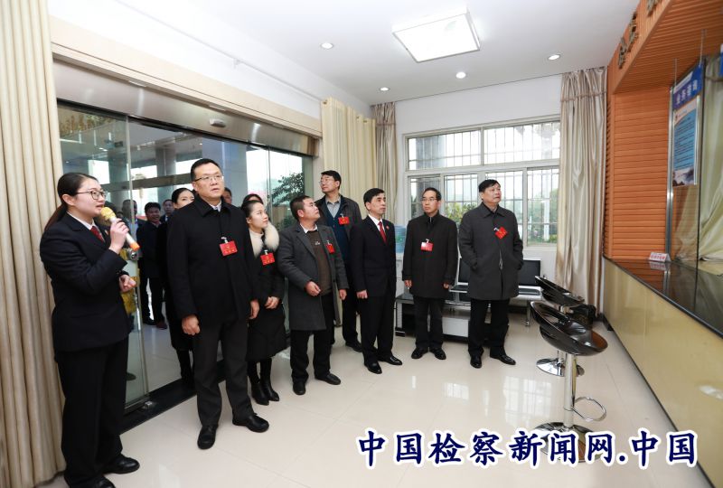 视察中,代表们先后参观了该院12309检察服务中心、检察文化长廊、党建文化长廊、荣誉室、脱贫攻坚作战室,检察宣告室等区域,听取了代表高度关注的司法公正、司法改革、生态环境司法保护、公益诉讼、接受人大代表和人民监督等相关工作情况介绍,并与检察官进行了深入交流。