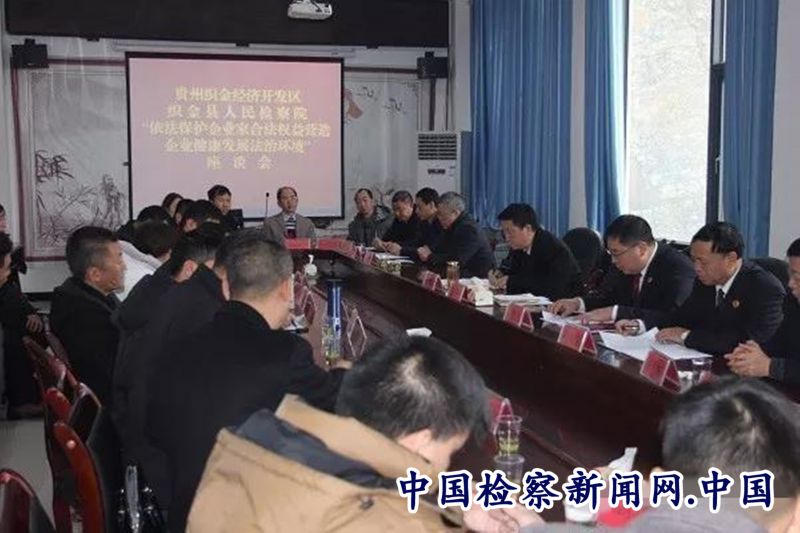 中国检察新闻讯(国金芳)日前,贵州织金县检察院联合织金经济开发区召开“依法保护企业家合法权益营造企业健康发展法治环境”座谈会。织金县委副书记、织金经济开发区党工委副书记王兴明、织金县检察院党组书记、检察长翟培友、20余家企业代表、经开区部分干部职工等40余人参会。