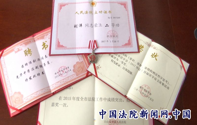 在临江市人民法院工作的这七年时间中,刘洋同志立足本职工作,不断努力专研业务、提升自身修养,始终坚守在审判执行一线,坚持公正司法,甘于无私奉献,先后荣获“个人二等功”“临江好人•最美政法干警”“个人嘉奖”等多项荣誉。