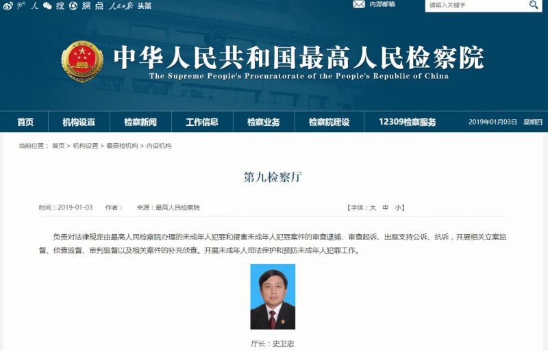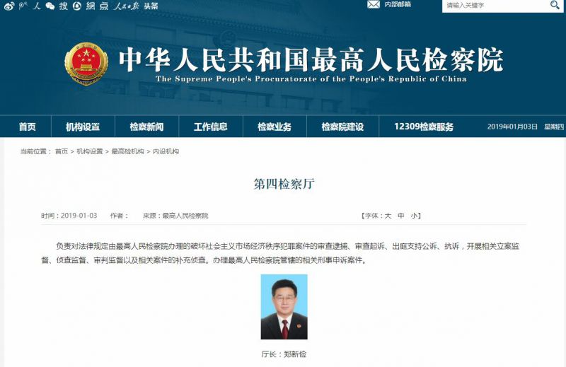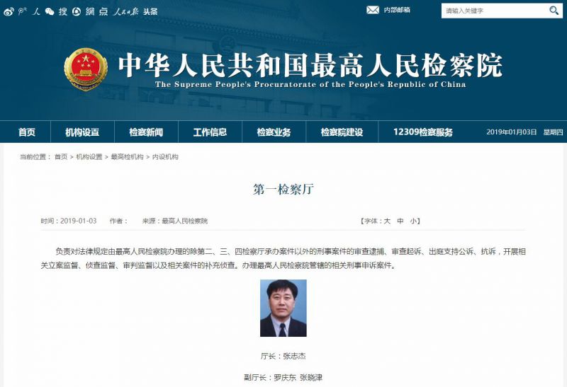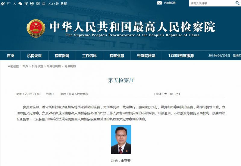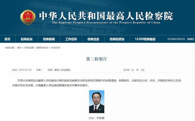 2019年1月3日上午,国务院新闻办公室举行新闻发布会,由最高人民检察院检察长张军、副检察长童建明介绍最高人民检察院改革内设机构,全面履行法律监督职能有关情况。