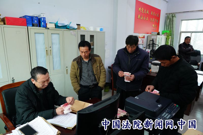 中国法院新闻讯(王雪阳)为了更好地维护农民工等弱势群体的合法权益,让农民工过上一个欢乐祥和的节日,信阳市平桥区人民法院在春节前,集中全力执行涉民生案件,特别是涉农民工工资的执行案件。2月4日,平桥法院执行局干警加班加点,给农名工发放工资7万元,8名农民工兄弟大年三十喜领血汗钱。